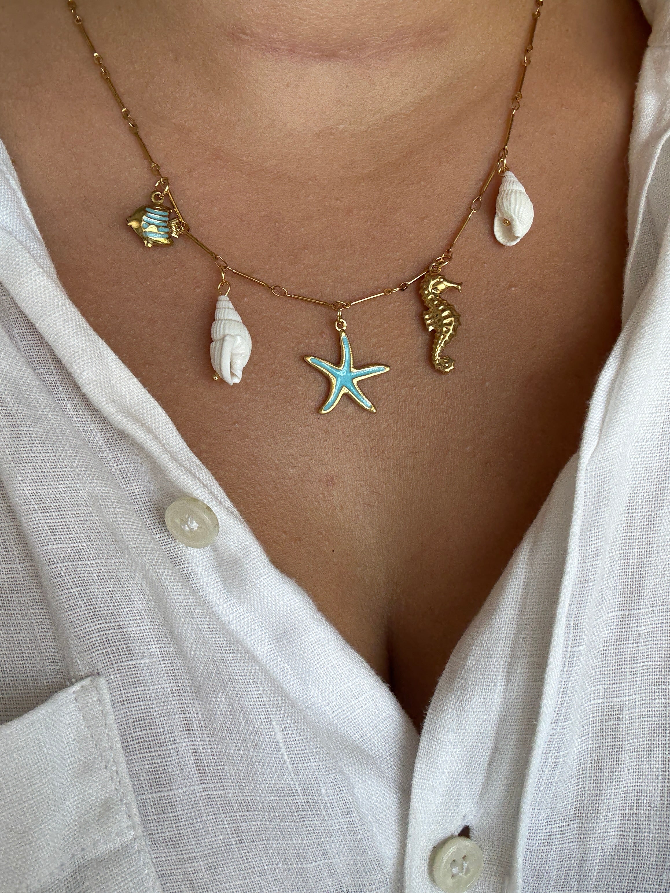 Çelik Deniz Kabugu Charm Kolye