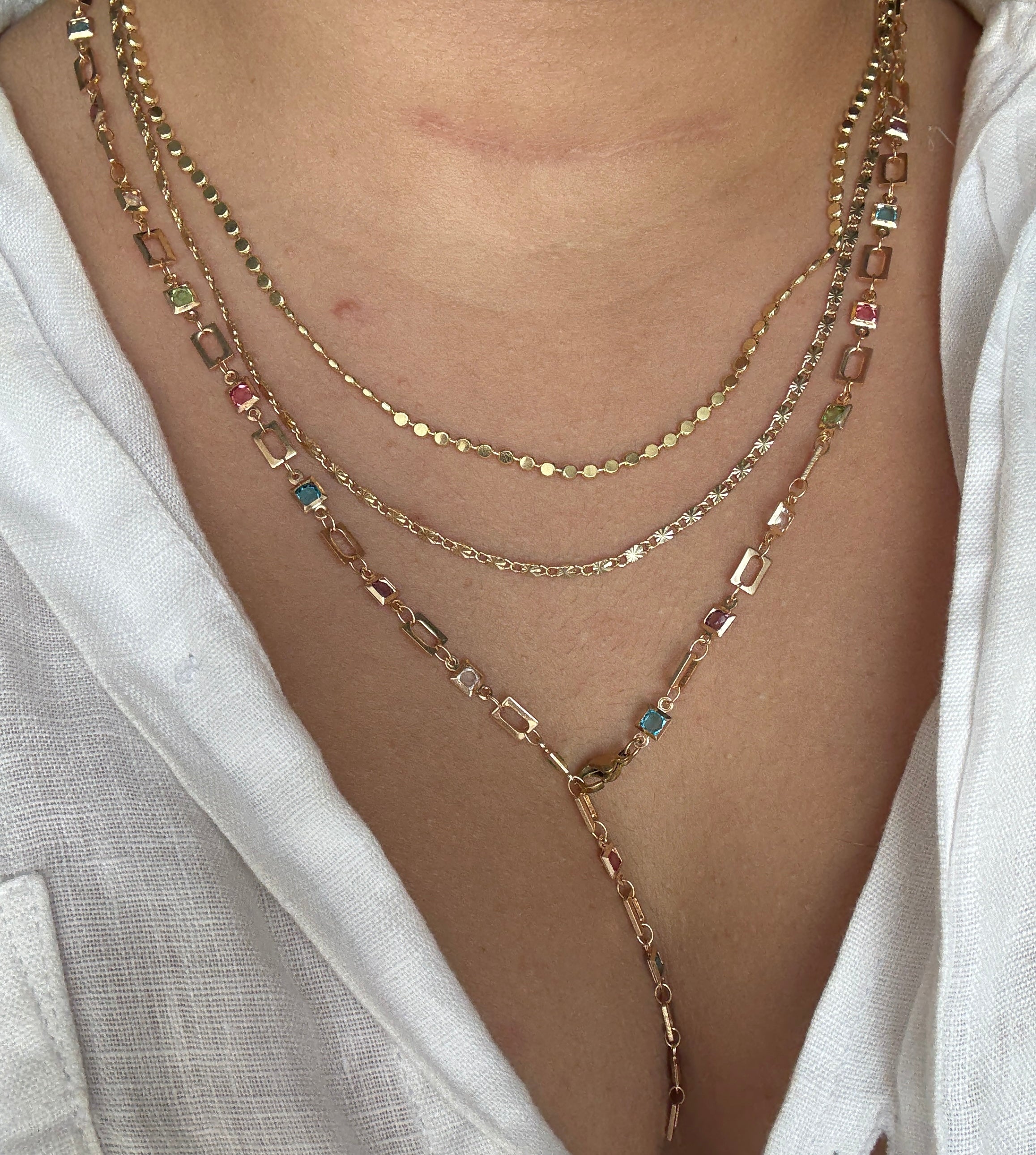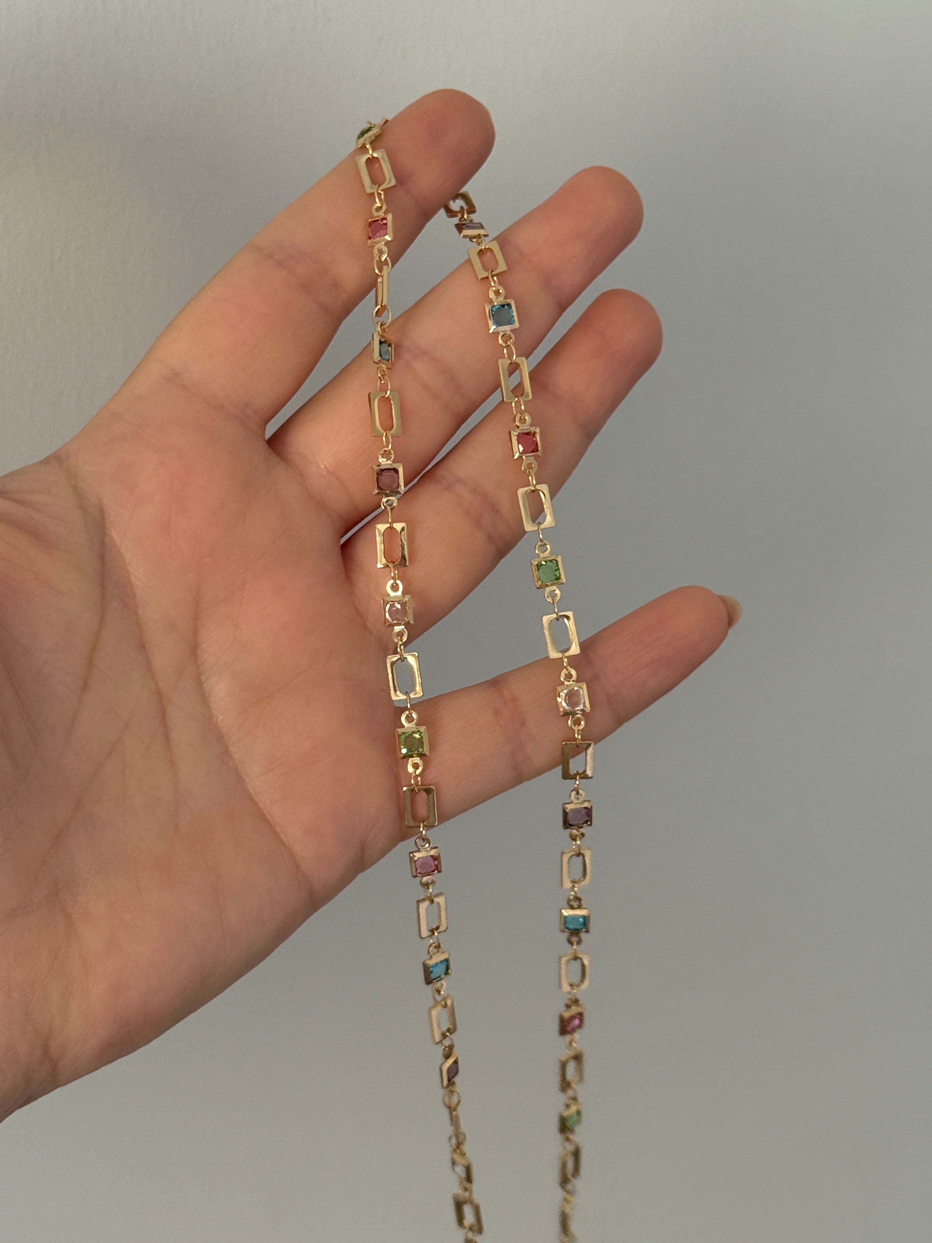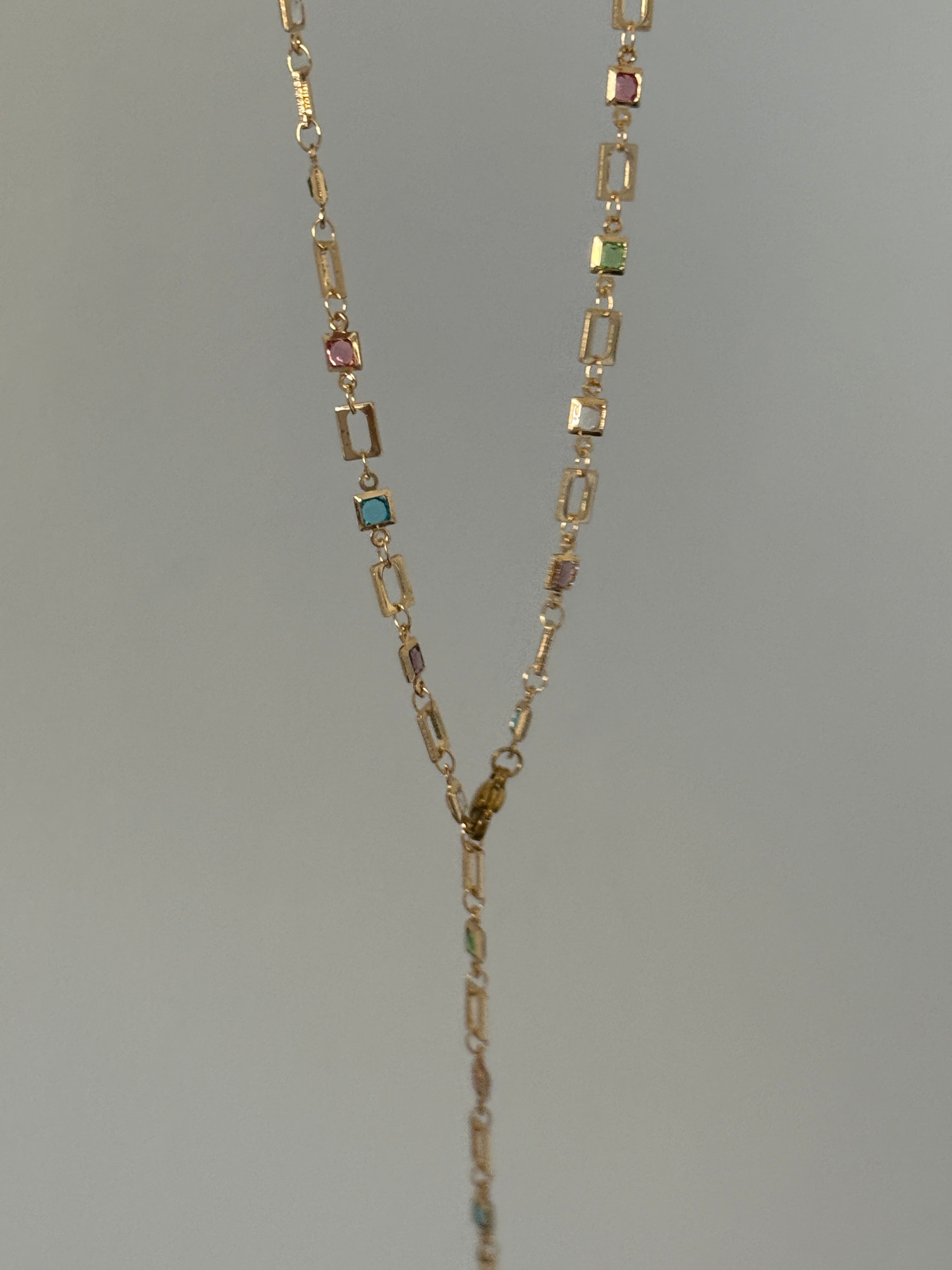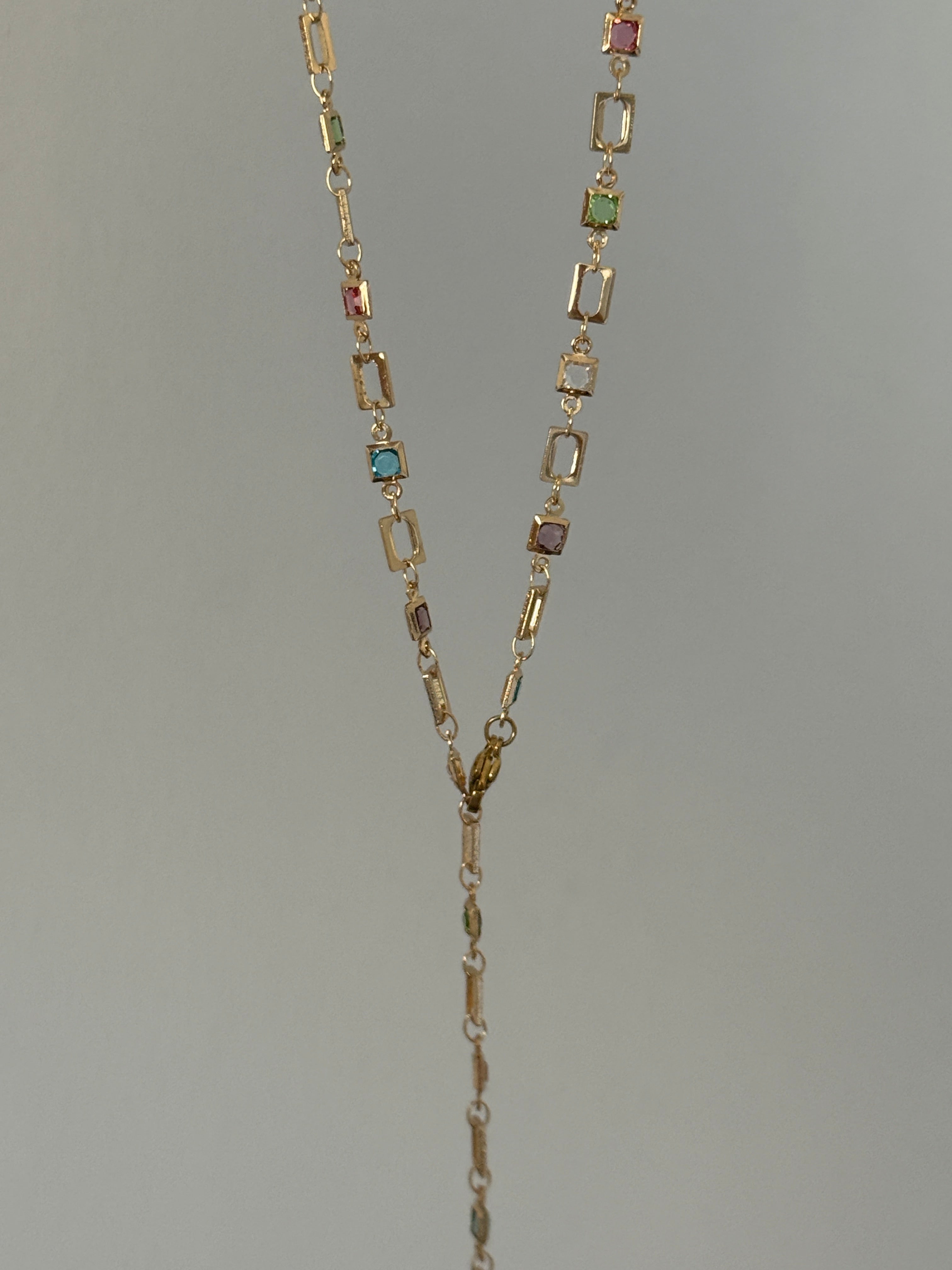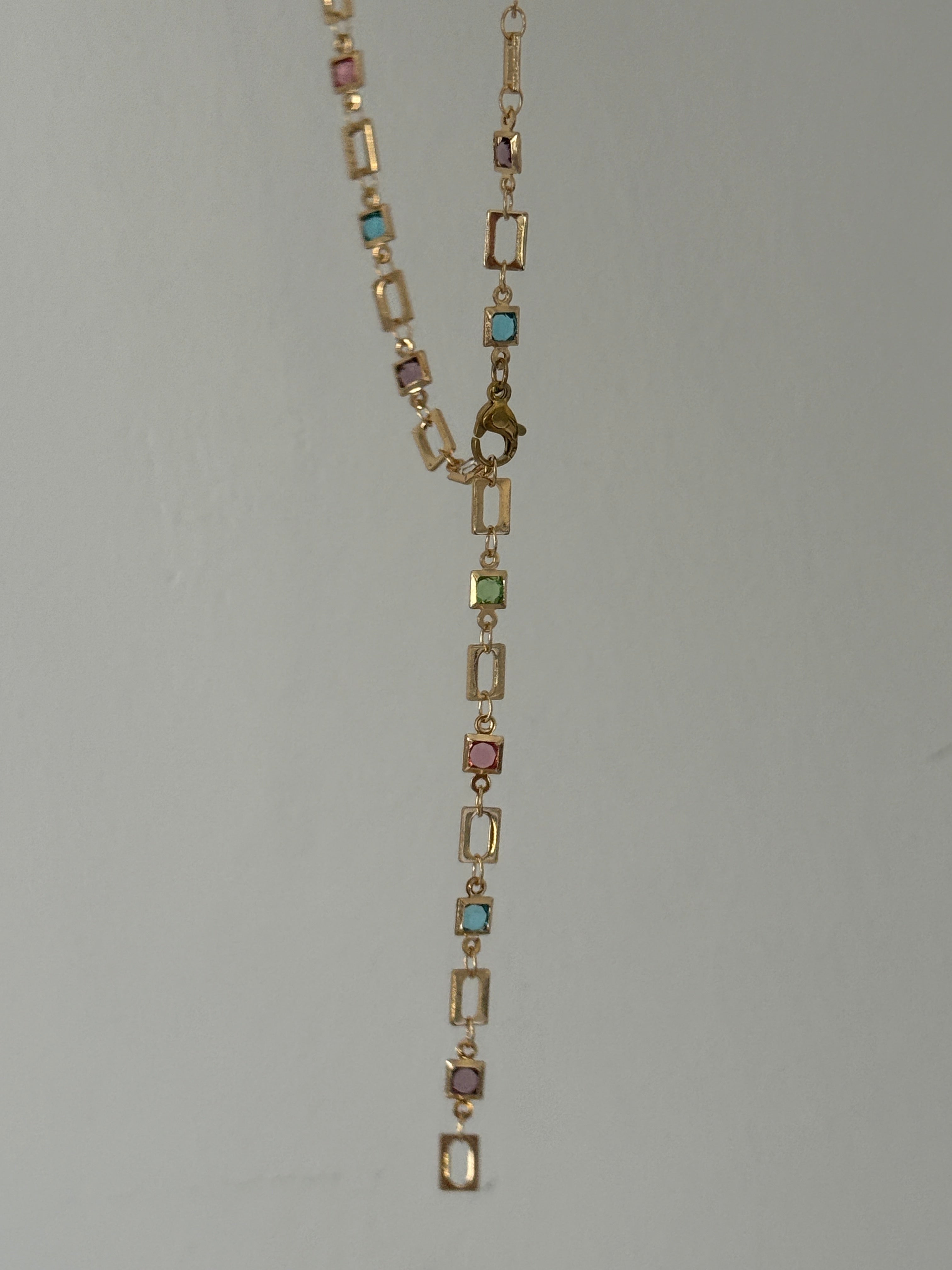 Renkli Taşlı Kare Model Y Kolye