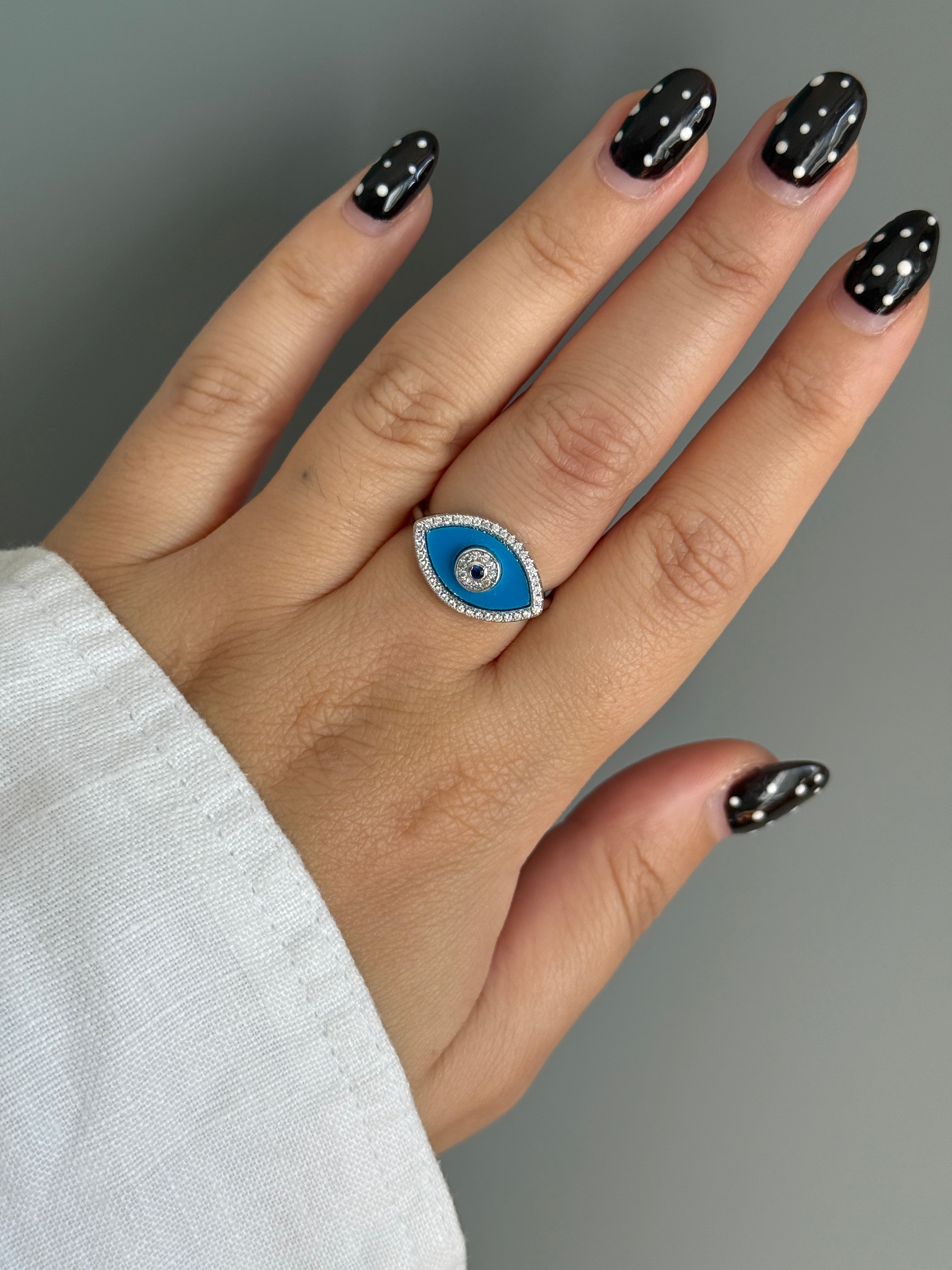 Mavi Hamsa Taşlı Ayarlanabilir Yüzük
